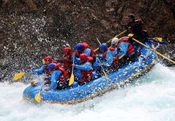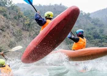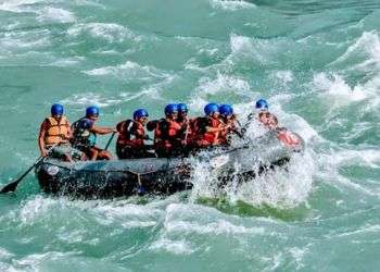 River rafting in Rishikesh is an adventurous water sport where participants navigate rivers on inflatable rafts, tackling rapids, enjoying scenic views, and experiencing teamwork, excitement, and adrenaline in a thrilling outdoor environment.